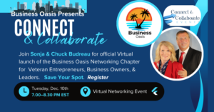 The Business Oasis: Connect and Collaborate: I also lead The Business Oasis, a networking chapter dedicated to supporting business owners, veterans, and military spouses in the Greater Tampa area. This initiative focuses on building meaningful connections, collaboration, and opportunities for business growth, fostering a supportive community for leadership and success.